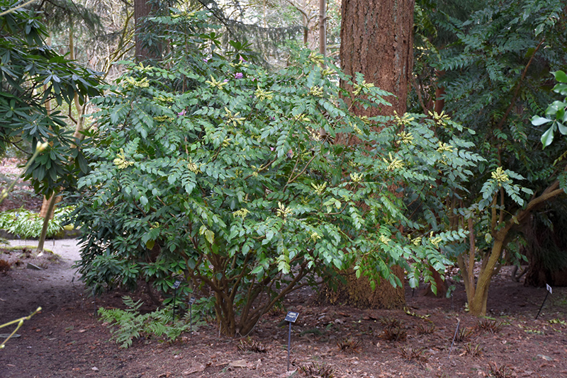 Hardiness Zone: 4b Other Names: Beal's Barberry Description: Interesting blue-green foliage resembles holly leaves; the spiny leaves are held on long branches giving this upright shrub fabulous texture; treasured for its bold clusters of bright yellow flowers; great for screening or borders Ornamental Features Leatherleaf Mahonia has attractive bluish-green evergreen foliage on a plant with an upright spreading habit of growth. The spiny oval pinnately compound leaves are highly ornamental and turn an outstanding purple in the fall, which persists throughout the winter. It features bold racemes of fragrant yellow flowers rising above the foliage in mid spring. It produces powder blue berries from late summer to early fall. Landscape Attributes Leatherleaf Mahonia is a multi-stemmed evergreen shrub with an upright spreading habit of growth. Its average texture blends into the landscape, but can be balanced by one or two finer or coarser trees or shrubs for an effective composition. This shrub will require occasional maintenance and upkeep, and should only be pruned after flowering to avoid removing any of the current season's flowers. It is a good choice for attracting birds to your yard, but is not particularly attractive to deer who tend to leave it alone in favor of tastier treats. Gardeners should be aware of the following characteristic(s) that may warrant special consideration; Leatherleaf Mahonia is recommended for the following landscape applications; Planting & Growing Leatherleaf Mahonia will grow to be about 10 feet tall at maturity, with a spread of 5 feet. It tends to fill out right to the ground and therefore doesn't necessarily require facer plants in front, and is suitable for planting under power lines. It grows at a medium rate, and under ideal conditions can be expected to live for approximately 20 years. This shrub does best in partial shade to shade. It does best in average to evenly moist conditions, but will not tolerate standing water. It is not particular as to soil pH, but grows best in rich soils. It is somewhat tolerant of urban pollution, and will benefit from being planted in a relatively sheltered location. Consider applying a thick mulch around the root zone in winter to protect it in exposed locations or colder microclimates. This species is not originally from North America.