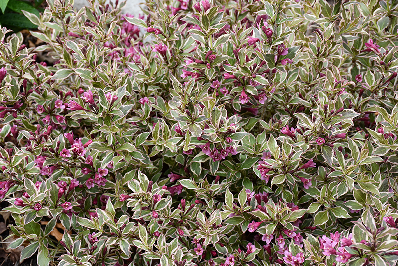 Hardiness Zone: 4a Brand: Proven Winners Description: An absolutely stunning selection, with plentiful deep rose-purple trumpet-shaped flowers appearing in late spring, along with cream and green variegated foliage that takes on purple tones; a colorful edging or container plant Ornamental Features My Monet Purple Effect® Weigela is covered in stunning clusters of rose trumpet-shaped flowers with yellow anthers along the branches in late spring, which emerge from distinctive crimson flower buds. It has attractive creamy white-variegated green foliage with hints of purple. The pointy leaves are highly ornamental and turn outstanding shades of burgundy and in the fall. Landscape Attributes My Monet Purple Effect® Weigela is a dense multi-stemmed deciduous shrub with a mounded form. Its relatively fine texture sets it apart from other landscape plants with less refined foliage. This shrub will require occasional maintenance and upkeep, and should only be pruned after flowering to avoid removing any of the current season's flowers. It is a good choice for attracting hummingbirds to your yard. It has no significant negative characteristics. My Monet Purple Effect® Weigela is recommended for the following landscape applications; Planting & Growing My Monet Purple Effect® Weigela will grow to be about 30 inches tall at maturity, with a spread of 30 inches. It tends to fill out right to the ground and therefore doesn't necessarily require facer plants in front. It grows at a fast rate, and under ideal conditions can be expected to live for approximately 30 years. This shrub should only be grown in full sunlight. It prefers to grow in average to moist conditions, and shouldn't be allowed to dry out. To help this plant achive its best flowering performance, periodically apply a flower-boosting fertilizer from early spring through into the active growing season. It is not particular as to soil type or pH. It is highly tolerant of urban pollution and will even thrive in inner city environments. This is a selected variety of a species not originally from North America. My Monet Purple Effect® Weigela makes a fine choice for the outdoor landscape, but it is also well-suited for use in outdoor pots and containers. It can be used either as 'filler' or as a 'thriller' in the 'spiller-thriller-filler' container combination, depending on the height and form of the other plants used in the container planting. It is even sizeable enough that it can be grown alone in a suitable container. Note that when grown in a container, it may not perform exactly as indicated on the tag - this is to be expected. Also note that when growing plants in outdoor containers and baskets, they may require more frequent waterings than they would in the yard or garden.![]()