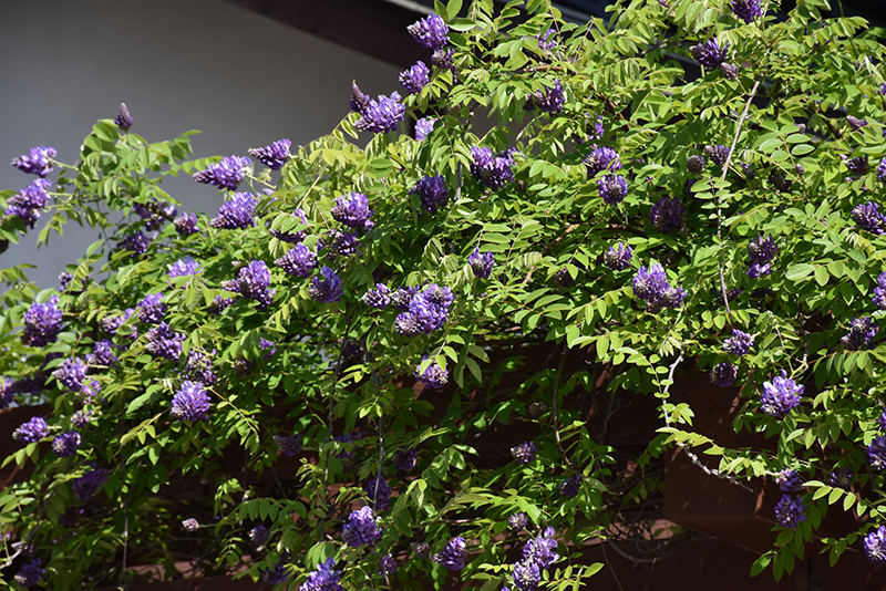 Hardiness Zone: 4a Other Names: Kentucky Wisteria Description: One of the hardiest of all wisterias, this stunning vine is highly tolerant to cold and features stunning chains of lavender flowers blooming three times a year; vine can grow quite woody, needs ample support and full sun Ornamental Features Blue Moon Wisteria is draped in stunning chains of fragrant lavender pea-like flowers with powder blue overtones hanging below the branches from mid to late spring. It has green deciduous foliage which emerges coppery-bronze in spring. The narrow pinnately compound leaves turn yellow in fall. Landscape Attributes Blue Moon Wisteria is a multi-stemmed deciduous woody vine with a twining and trailing habit of growth. Its average texture blends into the landscape, but can be balanced by one or two finer or coarser trees or shrubs for an effective composition. This is a high maintenance woody vine that will require regular care and upkeep, and should only be pruned after flowering to avoid removing any of the current season's flowers. It is a good choice for attracting hummingbirds to your yard, but is not particularly attractive to deer who tend to leave it alone in favor of tastier treats. Gardeners should be aware of the following characteristic(s) that may warrant special consideration; Blue Moon Wisteria is recommended for the following landscape applications; Planting & Growing Blue Moon Wisteria will grow to be about 30 feet tall at maturity, with a spread of 24 inches. As a climbing vine, it tends to be leggy near the base and should be underplanted with low-growing facer plants. It should be planted near a fence, trellis or other landscape structure where it can be trained to grow upwards on it, or allowed to trail off a retaining wall or slope. It grows at a fast rate, and under ideal conditions can be expected to live for approximately 30 years. This woody vine should only be grown in full sunlight. It does best in average to evenly moist conditions, but will not tolerate standing water. It is not particular as to soil type or pH. It is highly tolerant of urban pollution and will even thrive in inner city environments. Consider applying a thick mulch around the root zone in winter to protect it in exposed locations or colder microclimates. This is a selected variety of a species not originally from North America, and parts of it are known to be toxic to humans and animals, so care should be exercised in planting it around children and pets.![]()