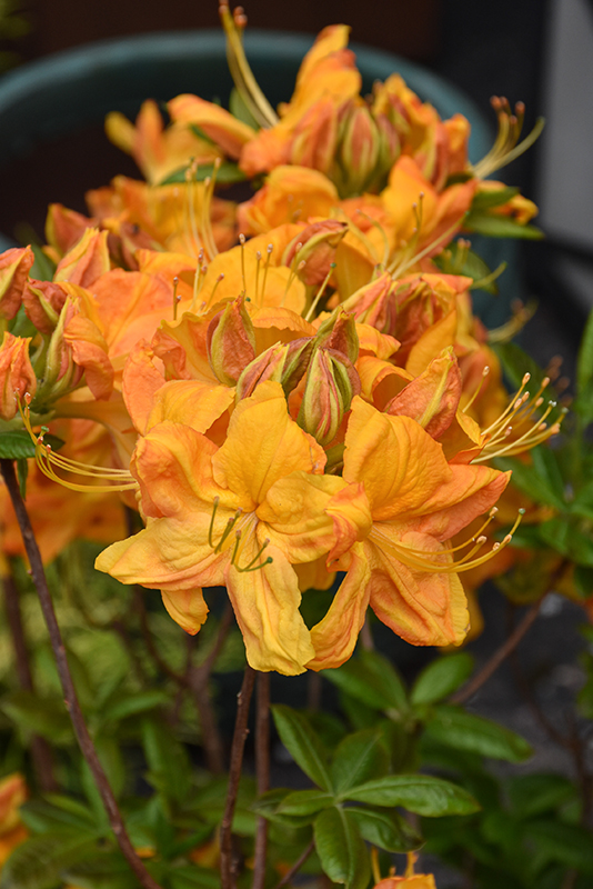 Hardiness Zone: 5b Group/Class: Exbury Hybrids Description: A stunning variety with extraordinary coral and yellow blooms with golden blotch that cover the branches in mid spring; showy when massed in a border; absolutely must have well-drained, highly acidic and organic soil, use plenty of peat moss when planting Ornamental Features Klondyke Azalea is covered in stunning clusters of lightly-scented coral-pink trumpet-shaped flowers with yellow overtones and a gold blotch at the ends of the branches in mid spring before the leaves. It has green deciduous foliage. The glossy narrow leaves turn an outstanding red in the fall. Landscape Attributes Klondyke Azalea is an open multi-stemmed deciduous shrub with an upright spreading habit of growth. Its relatively coarse texture can be used to stand it apart from other landscape plants with finer foliage. This is a relatively low maintenance shrub, and should only be pruned after flowering to avoid removing any of the current season's flowers. It has no significant negative characteristics. Klondyke Azalea is recommended for the following landscape applications; Planting & Growing Klondyke Azalea will grow to be about 8 feet tall at maturity, with a spread of 8 feet. It tends to be a little leggy, with a typical clearance of 1 foot from the ground, and is suitable for planting under power lines. It grows at a slow rate, and under ideal conditions can be expected to live for 40 years or more. This shrub does best in full sun to partial shade. You may want to keep it away from hot, dry locations that receive direct afternoon sun or which get reflected sunlight, such as against the south side of a white wall. It requires an evenly moist well-drained soil for optimal growth, but will die in standing water. It is very fussy about its soil conditions and must have rich, acidic soils to ensure success, and is subject to chlorosis (yellowing) of the foliage in alkaline soils. It is somewhat tolerant of urban pollution, and will benefit from being planted in a relatively sheltered location. Consider applying a thick mulch around the root zone in winter to protect it in exposed locations or colder microclimates. This particular variety is an interspecific hybrid.
